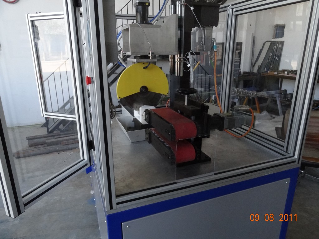 Otomotiv sektöründe, muhtelif çaplardaki kauçuk hortumların, istenilen açılarda veya düz olarak kesimi için tasarlanmış, üzerinde metraj sayıcılı dahili çekicisi bulunan, numerik kontrollü kesim makinesidir. Testere grubu dikey ve açısal hareketi ile çekici grubu tahriki, ayrı ayrı servo motor ve hassas redüktör grupları ile sağlanmaktadır.